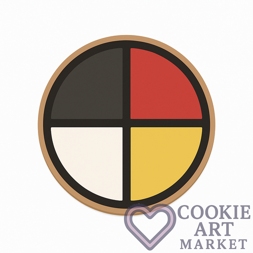 In a poetic dance of colors and lines, this medicine wheel illustration echoes Native American traditions in a minimalist form. The design, optimized for cookie creation, offers a harmonious blend of culture and creativity against a pure white backdrop.