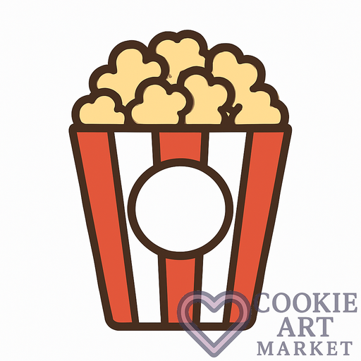 Designed for those who appreciate the art of baking and the joy of cinema, this popcorn box illustration merges creativity with functionality. Its clear, bold outlines and lack of shading make it an ideal choice for cookie cutter designs in the entertainment category.