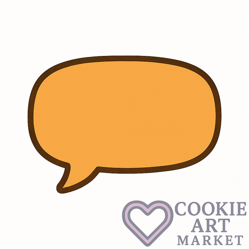 This speech bubble illustration, optimized for cookie cutter use, presents a clean and precise design. Featuring solid colors on a white background, it serves as a versatile tool for creating unique cookies in the shapes of expressive symbols.