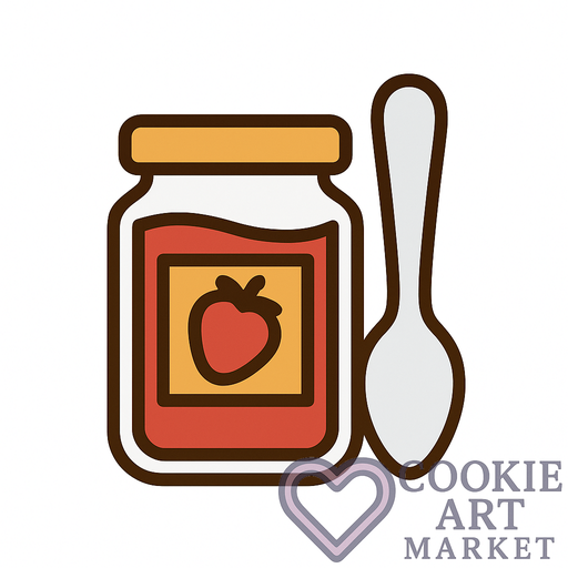 Playful: This delightful illustration captures the essence of a sweet jam jar and spoon, perfect for cookie cutting fun! The simple design ensures it will stand out, with a bold, dark brown outline that adds character to any baking project.