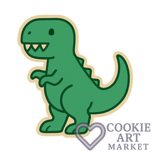 In a prehistoric parade of cookies, this T-Rex illustration stands out, rendered in solid colors against a clear white backdrop. Perfect for those who want to combine the art of baking with the charm of ancient creatures.