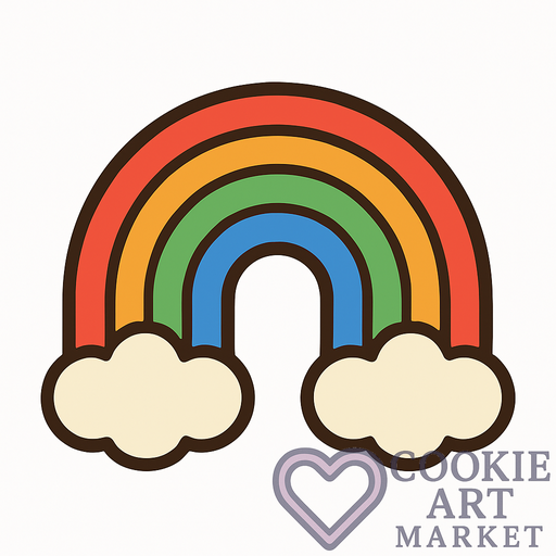 In the arc of this rainbow lies a tale of beauty and simplicity, painted with solid colors and framed by a cookie’s dark brown edge. This illustration brings the outdoor wonder into your kitchen, ready to inspire your next creation.