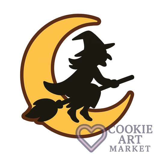 In the stark simplicity of moonlight, a witch dances across the crescent sky. This enchanting illustration, outlined in rich brown, brings the mystique of Halloween to life, perfect for any festivity.