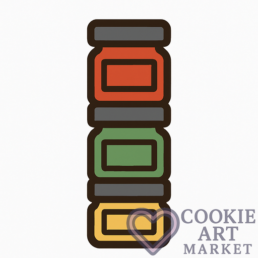 In this formal design, the spice jars are portrayed with precision and clarity, using solid colors and a refined outline. Ideal for cookie cutter illustrations, it offers a clean and professional look.