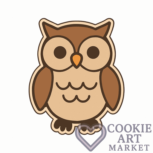 Presenting a formal and refined owl design, strategically crafted for cookie cutter applications. The illustration utilizes solid colors and is devoid of shadows, ensuring a pristine and straightforward aesthetic. An exemplary addition for those seeking elegance in confectionery art.