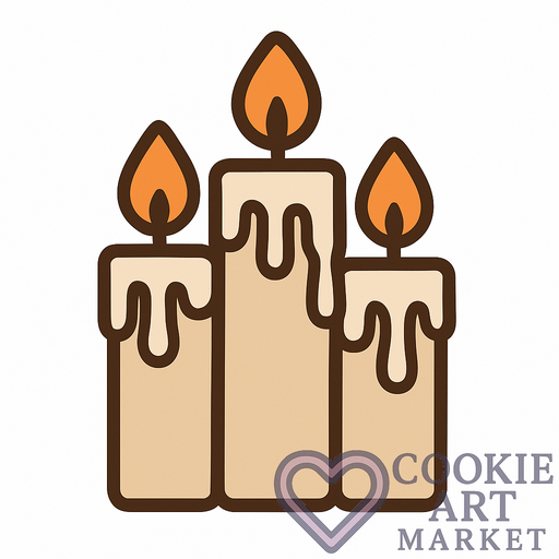 In a realm where mystery meets confectionery art, this design of occult candles captures the essence of Halloween. Crafted with simplicity, the solid hues and classic dark brown edge make for an enchanting cookie cutter pattern, beckoning the curious and the magical.