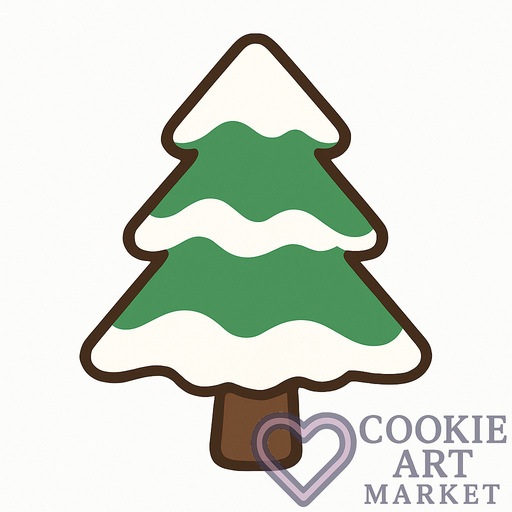 This playful illustration captures the essence of a winter wonderland with a snow-covered pine tree, perfect for holiday cookie creations. With its simple colors and charming design, it brings a touch of festive cheer to your baking adventures.