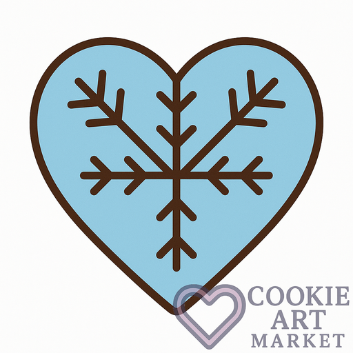 This formal and elegantly designed heart-shaped snowflake illustration is ideal for holiday-themed cookie cutters. Featuring a clean, simplistic style with a solid brown outline, it enhances any festive baking project.