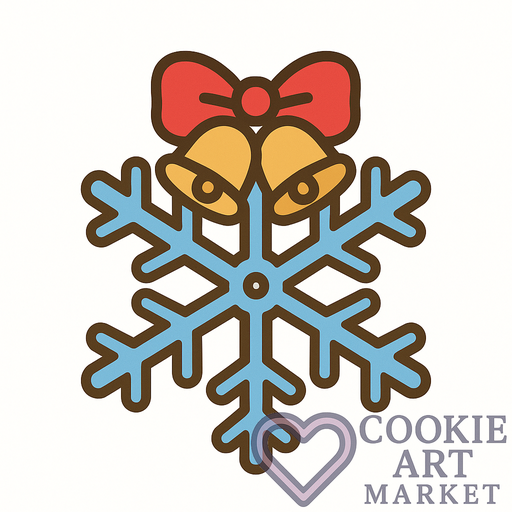 This illustration features a snowflake ornamented with bells and ribbons, optimized for cookie cutter designs. The clean lines and solid colors make it an ideal choice for holiday-themed baking projects, adding a touch of elegance and simplicity to your winter festivities.