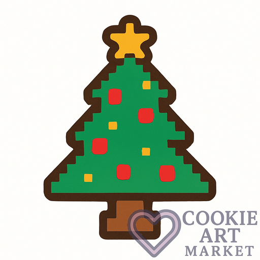 This playful pixel-art Christmas tree is designed perfectly for cookie cutters, offering a retro charm to your holiday baking. Featuring simple, solid colors and a bold outline, it’s the ideal festive addition to your seasonal illustrations.