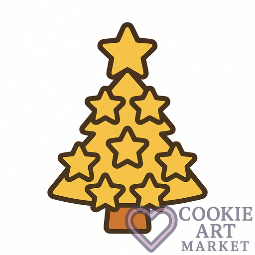 A celestial Christmas tree made of stars stands against a pristine white backdrop, inviting the spirit of the season into your heart. Its simple elegance and crisp outline make it an ideal inspiration for holiday baking and crafting alike.