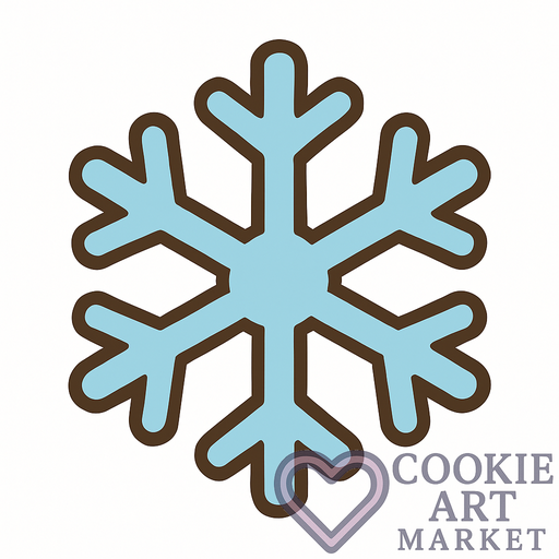 This illustration presents a flat, cartoon-style snowflake optimized for cookie cutting. With solid colors and a precise 5px brown outline, it’s a perfect tool for crafting seasonal treats with ease and charm.