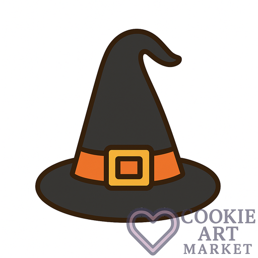Dive into the Halloween spirit with this charming illustration of a classic witch hat, perfect for cookie enthusiasts. Its simple clipart style and bold outlines make it a delightful addition to any spooky celebration.