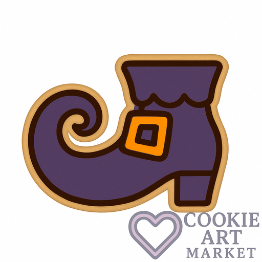 Presenting a formal depiction of a witch’s shoe, this illustration is optimized for precision in cookie cutter design. With its curled toe and minimalist style, it’s an ideal choice for professional bakers and Halloween decorators alike.